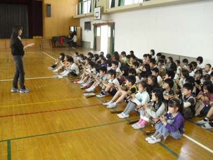 4年生、おむかえ集会の練習