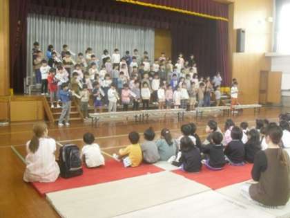 今日は音楽発表会で歌う歌を、近隣の園児たちに向けて披露しました。最後には、園児たちも一緒に「きらきら星」を楽しそうに歌い、一体感を感じました。