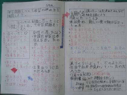 学習問題をつくり,学習の進め方を確認しました。米づくりによって,社会や人々のくらしがどのように変わっていったのかという,みんなの学習問題づくりをしました。