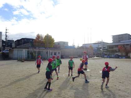チームで声を掛け合いながら、上手にパスを回しています。