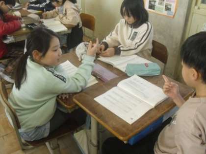 グループで冬の俳句や短歌を作っていました。子どもたちはとても楽しそうで、指で文字を数えながら、真剣に考えています。
