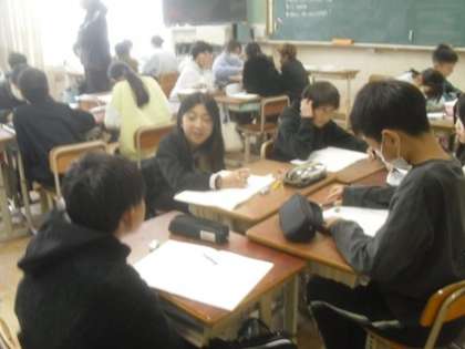 見方考え方を深めようの単元です。問題文を読んで自分なりの考えをもってグループでその考えを交流しています。