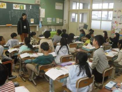 普段の生活で頑張っていることを発表した後、教材文を読んで「めあてにむかってがんばること」について考えていました。