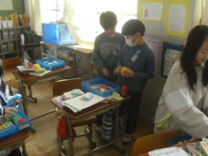4年生が絵の具セットの確認やお道具箱の整理整頓を行いました。