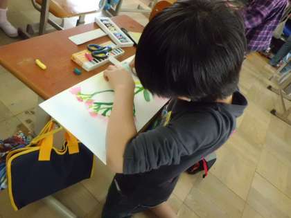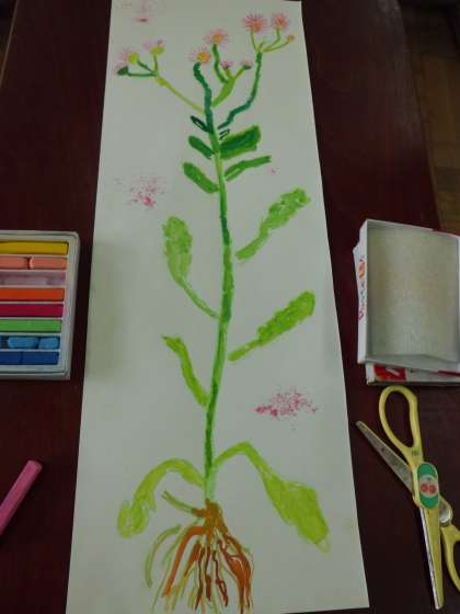 校内に生えている草花を,葉っぱや花びら茎の様子をよく見て描いています。