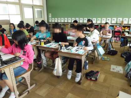 書写で「へん」と「つくり」の組み立て方に気をつけて書こう。6年生ではじめての習字でした。