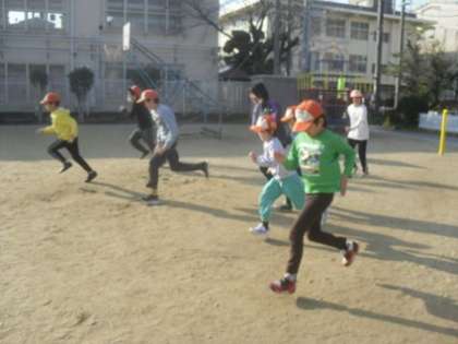 運動場ではひまわり学級の子どもたちがランニングをしていました。