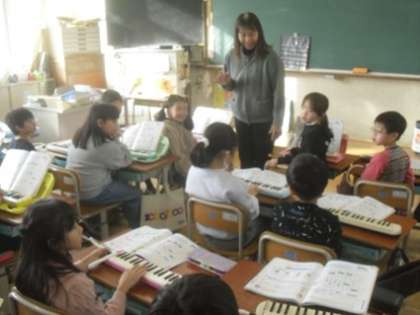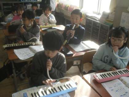 鍵盤ハーモニカを使って3つの音で旋律を作る活動が行われました。