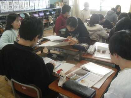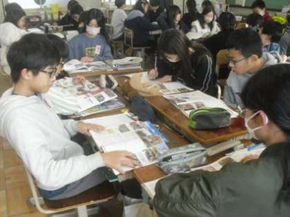 子どもたちは、戦争がどのようなものであったのか、そしてなぜ戦争をやめられなかったのかを調べています。