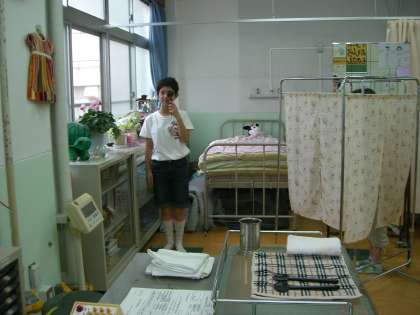 おもしろいんですよ! 自分の使った黒い遮眼器をそれぞれが消毒液につけて,拭いて,次の人に渡しています。消毒した後,遮眼器がとってもいいにおいがするんです。そのにおいをかいだ後,子どもたちはうれしそうな顔をしています。