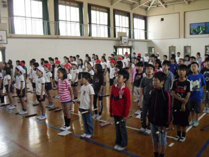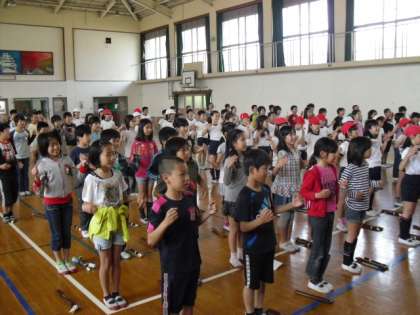 1年生のお迎え集会に向けて,初めて学年練習を行いました。