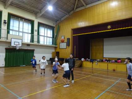 体育館では、バスケットボール部が、活動していました。