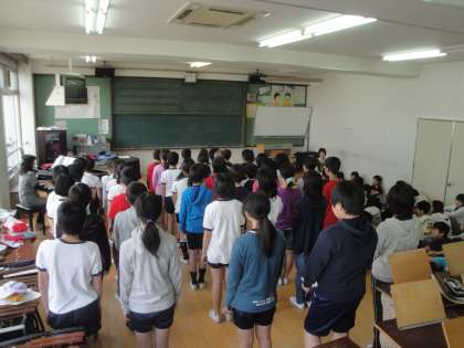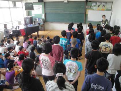 初めての学年音楽でした。「つばさをください」のアルト・ソプラノそれぞれのパートを聴きあい,どのように歌えば美しいハーモニーになるのかを考えました。