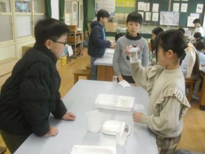 水の量を変えて、食塩とミョウバンの溶け方の違いを調べました。