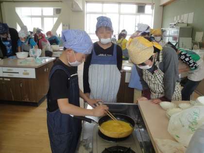 中火で少し固まるまでかき混ぜながら火を通しました。
