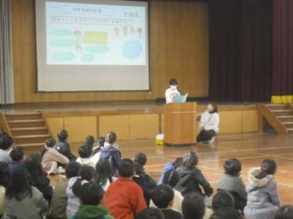 ひまわり学級、1年生、3年生、5年生が代表して作文を読みました。
