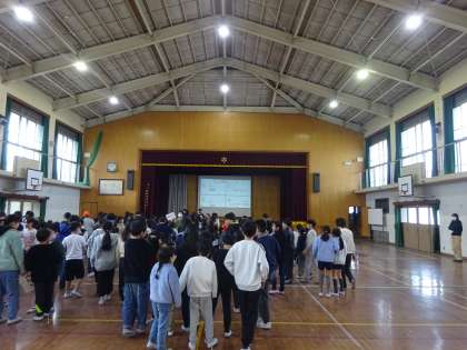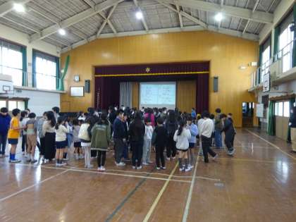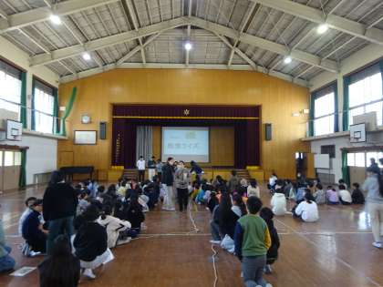 曜日ごとに、たてわりグループで集まり、給食に関するクイズ大会をしています。