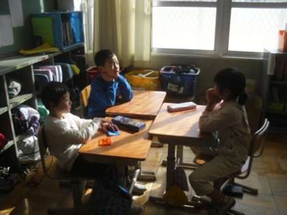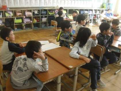 金曜日に行う近隣の園児たちを招いて交流する会に向けて、1年生は準備を進めています。