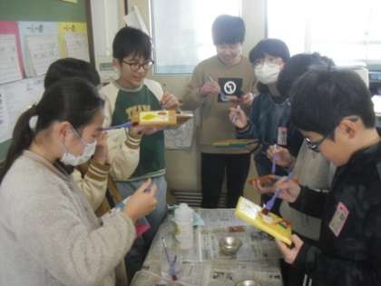 卒業制作のオルゴールづくりもいよいよ大詰め。丁寧に色やニスを塗っています。