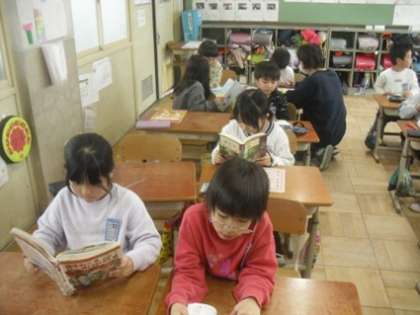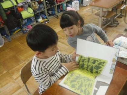 図書室で読みたい本を借りてきました。子どもたちはそれぞれ興味のある本を選び、楽しそうにページをめくっています