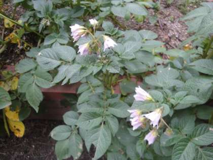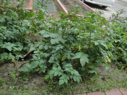 ジャガイモがどんどん成長しています。きれいな花も咲いています。