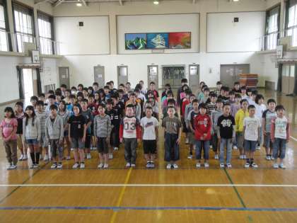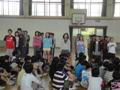 体育館で,お迎え集会に向けての練習をしました。