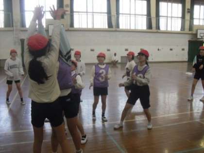 バスケットボールをしていました。卒業前に十分時間がとれなかったバスケットボールを楽しんでいました。