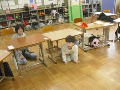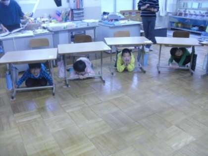 訓練に先立ち、避難について事前に話し合いを行い、子どもたちは第1避難の手順を確認しました
