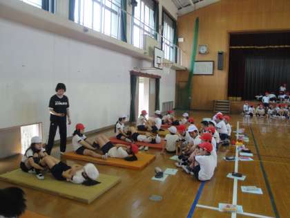 立ち幅とびと上体起こしの様子です。2人組の息も合っていました。