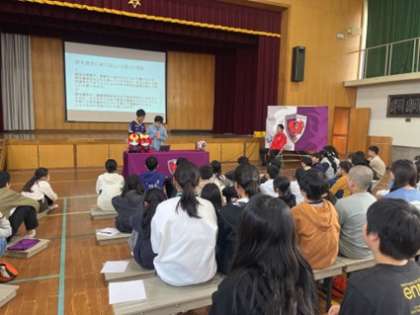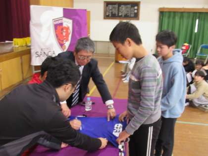 本日、サンガF.C.のプロサッカー選手、鈴木義宜選手が本校に来てくれました。