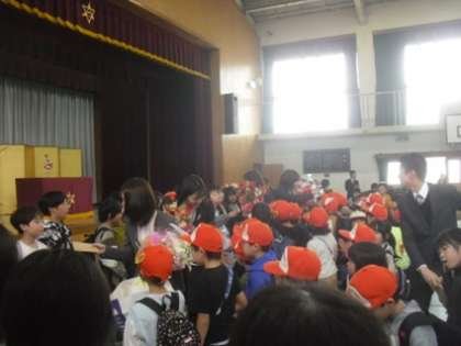 本日、本校で勤めていた教職員に感謝の気持ちを込めて、離任式を行いました。