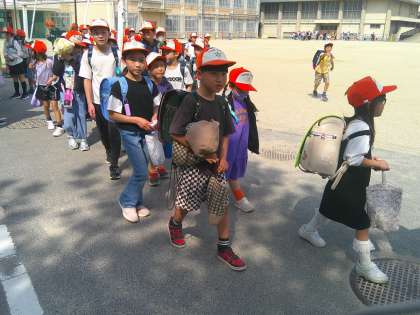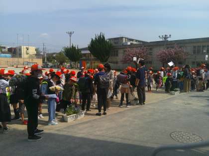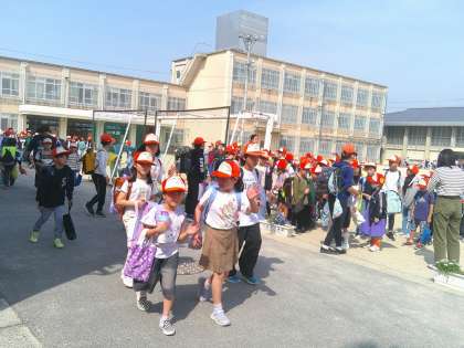 集団下校でも、新しいメンバーを加えて元気に帰っていきました。