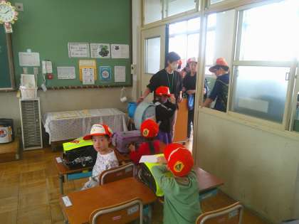 1年生の教室には、上級生が迎えに来てくれました。