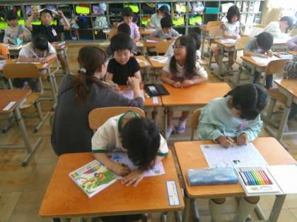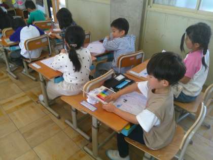 早く終わった子は、ワークシートに色を塗っています。この活動も、文字を丁寧に書く練習につながっています。