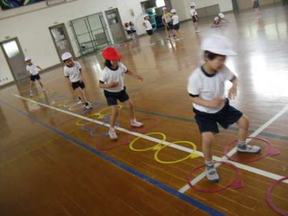 フラフープやケンステップを使って,いろいろな遊びを楽しみました。