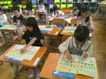 数図ブロックを使って学習していました。5より大きな数の学習です。