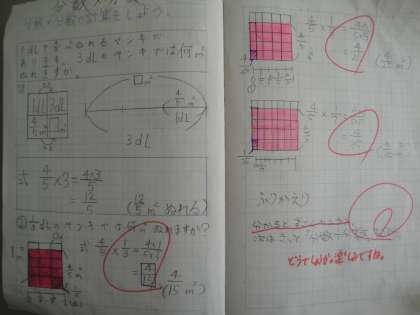 (分数)×(分数)の立式の意味と計算の仕方について考えました。