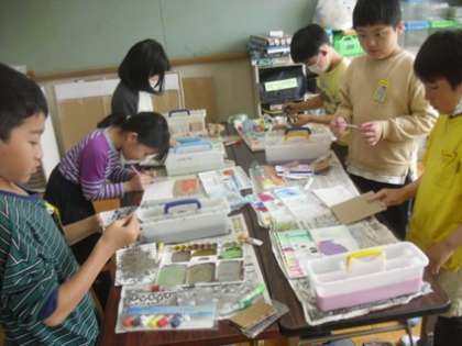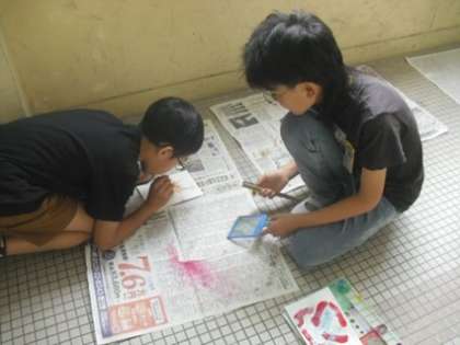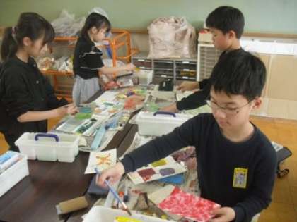 絵の具の多様な使い方を試し、そこから生まれる模様をもとに創造力を広げています。子どもたちが楽しそうに取り組んでいる姿がとても印象的でした。