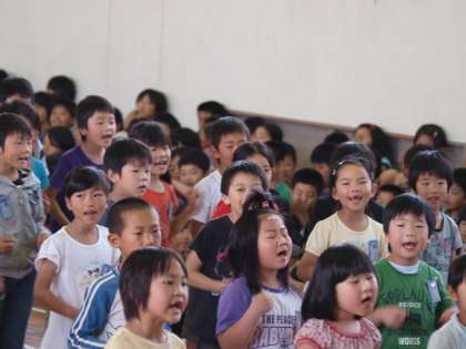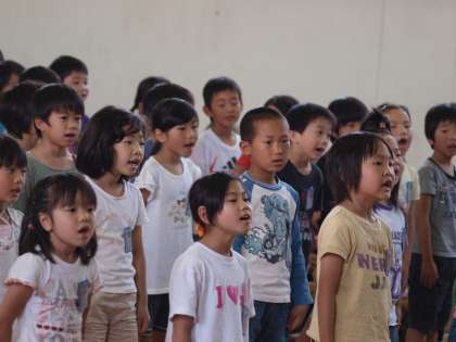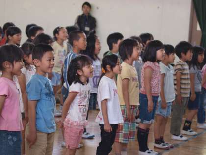 2年生は,元気いっぱいおむかえの言葉を言い,そのあとで心をこめて『あたらしいマーチ』を歌いました。
