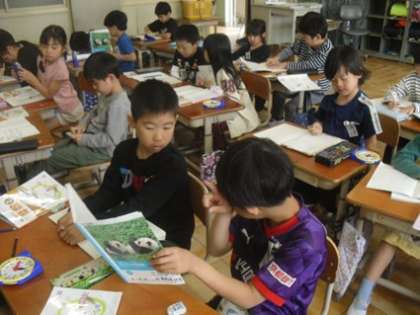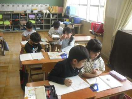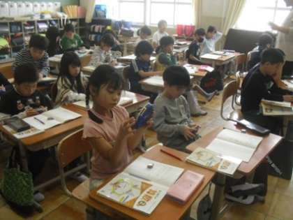 算数の授業では、子どもたちが時計を使って時間の読み方や計算を学んでいます。