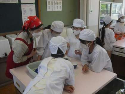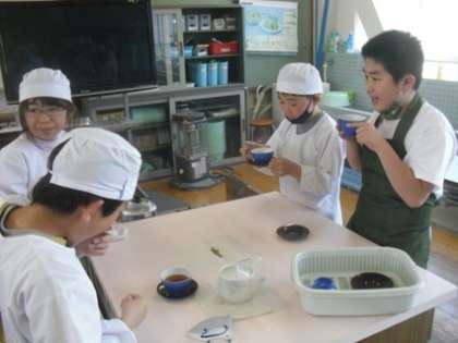 家庭科室やガスこんろの安全な使い方を知り、協力してお茶を入れていました。