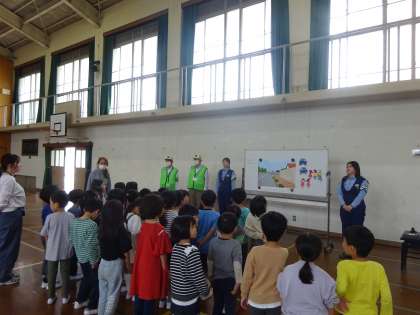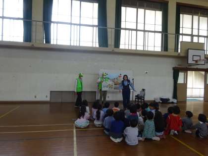 伏見警察署の方が来て下さり、交通安全教室を行っています。