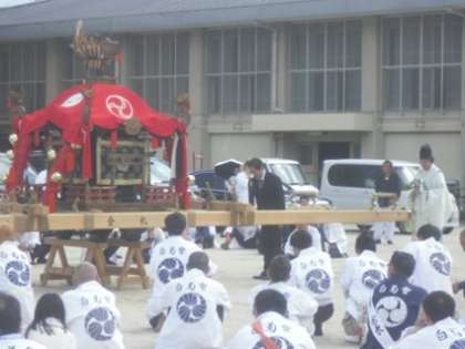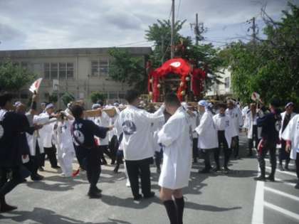 14日(日)に、金札宮の神幸祭が行われ、本校の運動場でも神輿巡行が行われました。