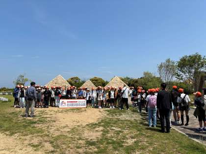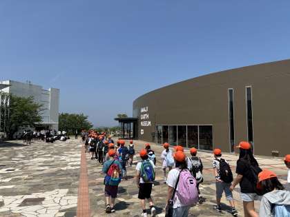 北淡震災記念公園に到着しました。学年写真を撮った後に、見学をしていきます。