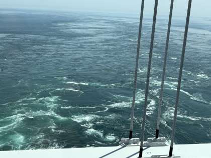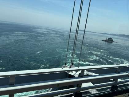 大鳴門大橋を渡っていると、橋の下にはうずしおが見えました!!