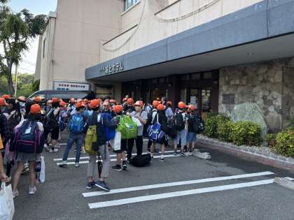 今日の宿泊先である「淡路島海上ホテル」に到着し、入館式です。