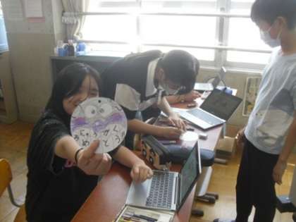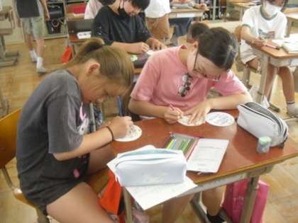 1年生にプレゼントするメダルを一生懸命作っています。