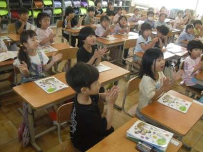 拍に合わせて体を動かしたり、声に出したりしながら、音楽の楽しさを感じています♪