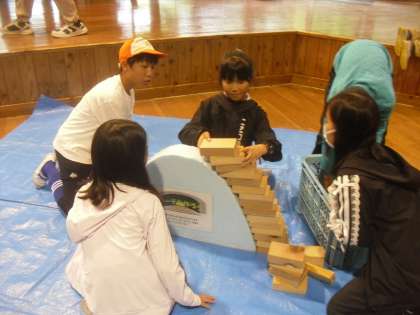 竹箸作りの後には、木材を使ったアーチづくりの活動がありました。