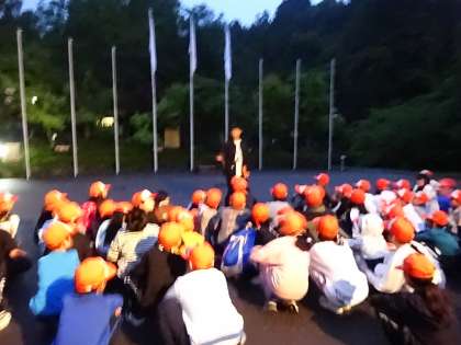 ランタンの明かりを持ちながら、クラスごとにゆっくりと